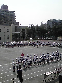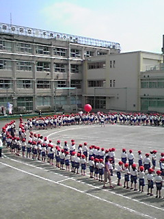 赤・白それぞれの組が心一つに団結します。(PCでご覧になると全校児童でハートの形を作っているように見えませんか?)