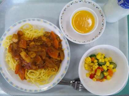 地中海ソースの中にたくさんの魚介類が入っていました。