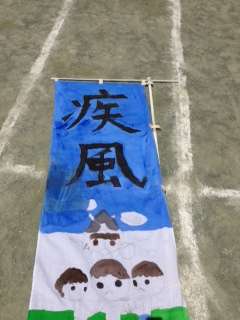 さて、騎馬戦をご覧になる際は、子どもたちの手作りの『のぼり』や、大将の兜の鍬形(くわがた)が取れるようになっているところなどにもご注目いただけると、より楽しんでいただけると思います。