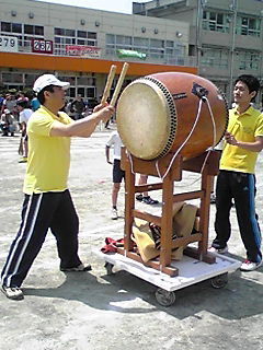 さあ午後の部が校長先生と栄養士さんの『八丈ひとよせ太鼓』の合図で始まりました♪
