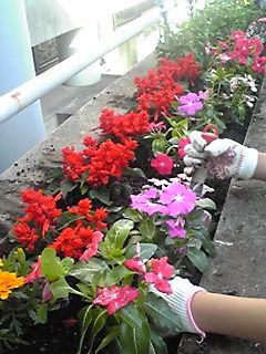 本校の栽培委員会の5・6年生20名で千歳温水プールの花壇に花を植えに行ってきました♪