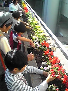 温水プールの方からお誘いを受けての企画です。準備万端に迎えていただき子供たちは短い時間でしたが充実したガーデニング体験をさせていただきました。
