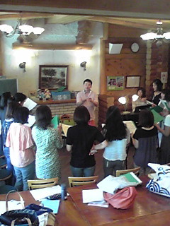 今日はログハウスでめばえコーラスの皆さんの練習日。