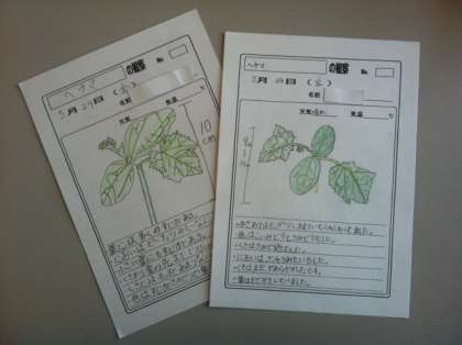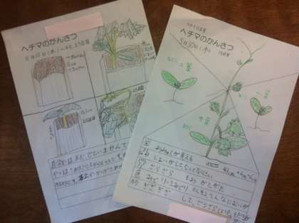 ヘチマの観察をしました。細かいところまでしっかりと見て、スケッチしています。とても上手になってきました。ツルがだいぶ伸びてきたので、そろそろ植えかえです。