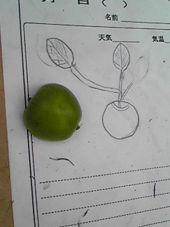 最初リンゴは『だんご』(集まっている様子を子供たちはそう言っていました)になって3つ4つ、くっついて果実が出来ます。