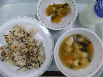 その言葉を子供の頃から聞きたい!そう願いを込めて美味しい給食(だし)作りに日々励んでおります。今日は五目ご飯と豆腐汁の二つにだしが入った「だしだし」給食でした。ランチルームで、一日にとるだしの量を子供たちに見せると、「こんなにあるの〜!?すご〜ぃ!」とランチルームが驚きの声でいっぱいになりました。