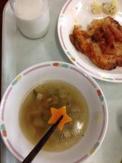 またまた給食のコンソメスープのなかに、にんじんの星が発見されました!