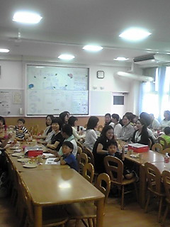 5年生の保護者の皆さんは川場移動教室の帰りを待ちながら親睦会でした。到着が30分ほど遅くなりましたが和やかに歓談しながらお待ちいただけてよかったです。直接校門にお迎えに来てくださった皆様、お待たせいたしました。