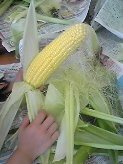 みんなニコニコ『わぁ♪出てきたよぉ』とピカピカのとうもろこしとの対面を楽しんでいました。食材に触れる貴重な体験です