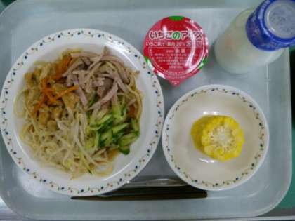 暑い夏にはやっぱり「冷し中華」が嬉しいですよね。麺はこだわりの生麺を使い、ヒンヤリしたタレにつけて美味しくいただきました。「季節を味わう」って素敵なことですね。また、今日は一年生がとうもろこしの皮をむいてくれました。みんなが一生懸命むいてくれたので、とても綺麗に蒸すことが出来ました。「これ私がむいたんだよ!」と、いつも以上にニコニコしながらとうもろこしをガブリ♪今日の1年生の教室は、まるで小さなお祭りがあったよう。1年生のみなさん、お手伝いとっても助かりました。ありがとう。次はお家でも、お手伝いにチャレンジしてくださいね♪