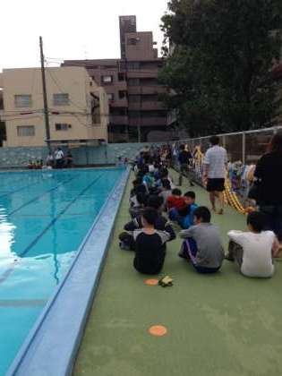 水泳記録会の後、続けて着衣泳を行いました。