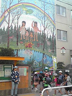 めばえの会の役員さん、見守りボランティアの皆さん、子供たち。
