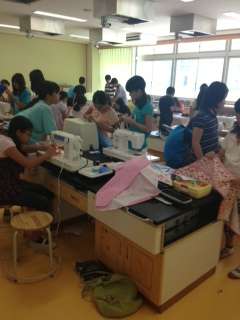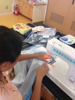 11月の展覧会に向けて、家庭科ではエプロンと花ふきんの作製にとりかかっています。