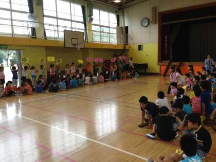 今日は、1.2年生で班の顔合わせをしました。