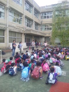 曇り空ですが4年生元気に出発しました。楽しい遠足になりますように♪
