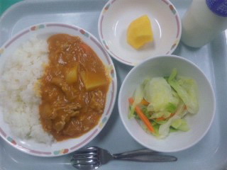 みなさんは秋と言えばどんな食べ物が浮かびますか?秋刀魚や太刀魚の塩焼き、柿や林檎、栗ご飯などなど、色々な食べ物が旬を迎えますね。そこで、10月は秋の味覚を楽しんでもらうために、果物をいつもよりたくさん献立に盛り込みました。果物の中にはビタミンCを多く含むものが多く、食後に食べると免疫力を高めてくれます。明日から10月です。週に一回は果物がでるので、「今日の果物は何だった?」と、子供たちに聞いてみてください。