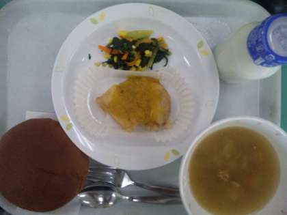 マリネソースは、お酢を少しきかせたソースのことを指します。今日はそのマリネソースを、揚げた鶏肉の上に添えてみました。しかし、このマリネソース、ただのソースではありません。子供がそのままだと食べづらい人参やピーマンをミキサーで細かくして混ぜてある「野菜のマリネソース」なのです。今回は人参の舌触りも気にならないよう人参には下茹でもしてみました。三度の試作を経ていざ本番!子供たちの反応をみると、笑顔でお肉を食べていました。残菜はほぼゼロ。やりました!!