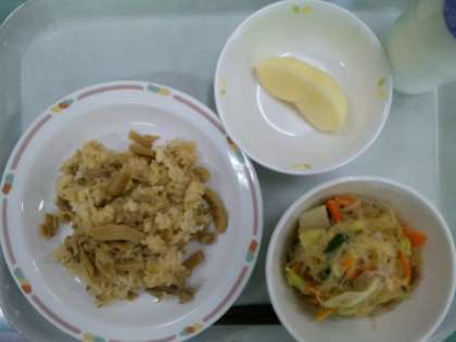 そうです。この林檎はただの林檎ではありません。この林檎は、まだ実が小さなころから、四年生が手塩にかけてずっと観察(と少し世話)をしてきたうつみ林檎園の林檎なのです。みんなが一生懸命見守ってきた甲斐あり、シャキシャキした甘くて美味しい林檎になりました。大きくなるまでには、たくさんの世話と、時間が必要でした。そして、傷なく一人前になるまでには、たくさんの支えと愛情が必要でした。無事大きくなった林檎を送り出す農家さんの気持ち、四年生は理解出来たかな。一つ一つの食材にはドラマがある、そんなことを考えながら今日は林檎をいただきました。