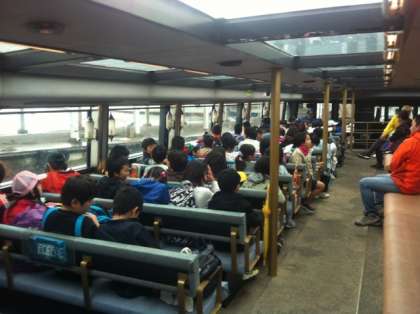 社会科見学船に乗りました。海側から見る東京港にみんな大興奮です。レインボーブリッジも下から見ました。