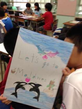 外国語の授業で、旅行のパンフレットづくりをしました。