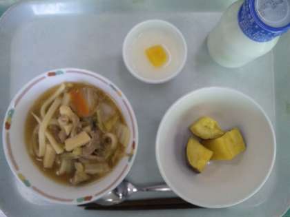 ちゃんぽんは、元々中国からきた留学生のために作られた料理で、長崎で最初に作られたことから「長崎ちゃんぽん」という名前が付けられたそうです。また、ちゃんぽんは主に「混ぜる」という意味ですが、中国では「ご飯はもう食べた?」という意味もあるそうです。今日はそんなちゃんぽんの麺をうどんに替えて作ったちゃんぽんうどん!よく効いただしと一緒にみんな美味しくいただきました。