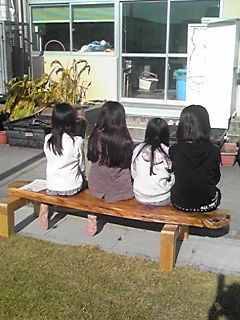 ちなみにこのベンチは以前校庭にあった桜の木を新校舎増設の際に撤去し主事さんが加工して作ったものです。
