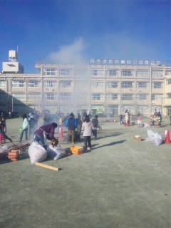 今日は遊び場開放委員会の『やきいも大会』です。ポカポカ日差しでやきいも日和ですね。デバンデスのお父様方がファイヤーキーパーをしてくれています。