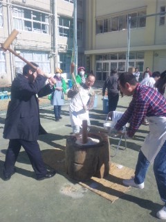 廻澤朝会の皆さんが美味しいおもちをついてくださってます。