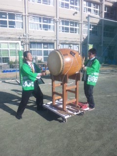 校長先生と栄養士さんの『八丈島人寄せ太鼓』の合図で、めばえまつりが始まりました♪