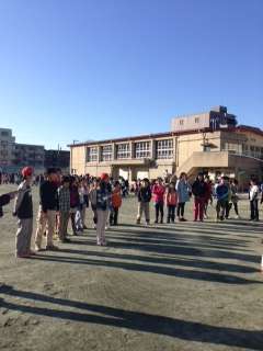 1年生から6年生まで一緒の班になり、大縄の回数を競います。