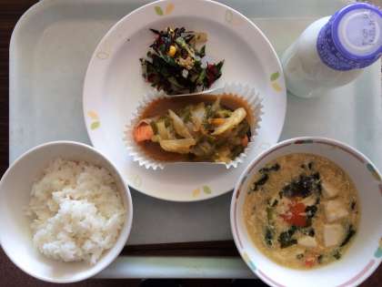 をした野菜と鮭の身をからめて焼く料理。今では給食で