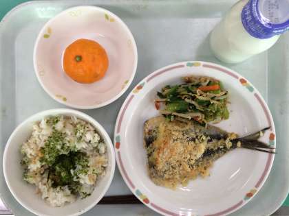 給食では、檸檬や葫で下味をつけた鰯に、マ