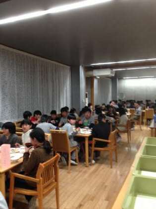 13日(木)の夕ご飯の様子です。川場の子と千歳台の子で仲良くお食事。