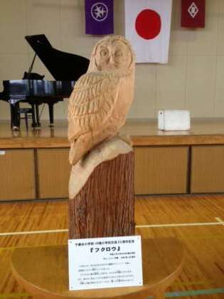あの『ふくろう』は川場小学校との交流25周年を記念して川場小学校にて作ったものです。