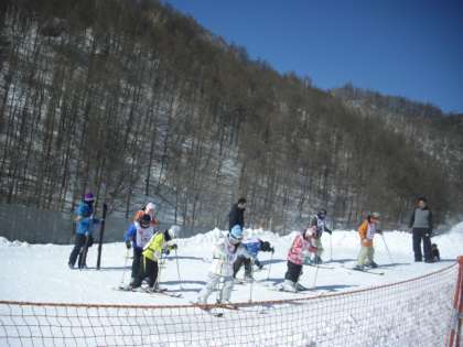 昨年の初日は吹雪でしたが今年は快晴で、動いていると汗をかくほどでした。初心者の子は何度も転びながらもあきらめず練習し、徐々に滑れるようになっていきました。