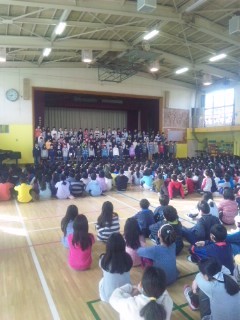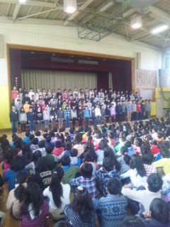 みんなで校歌を歌い、6年生の発表を聞かせてもらいました。