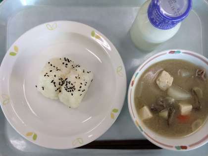 今日の給食は「おにぎりと豚汁だけ?!」と思った子もいるでしょう。