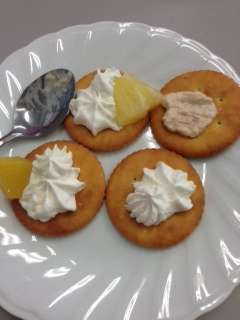 ビスケットの上にクリームやツナ、フルーツをのせて完成!