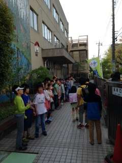 今日は4年1組の子どもたちが正門でお出迎え。みんなで元気であいさつしています。