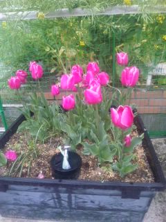 雨に濡れるチューリップが『残念だけど今日は遠足行けないね』とお話してるかな?