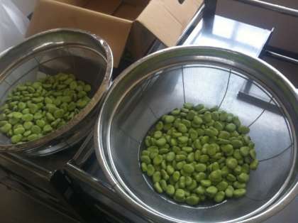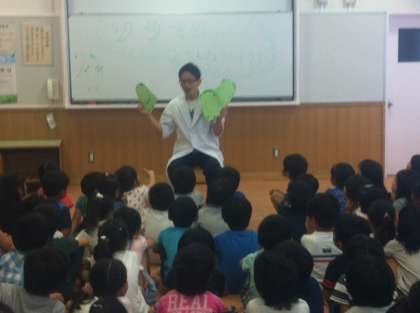 生活科の授業で、そら豆むきをしました。栄養士の吉村先生をゲストティーチャーに招いて、そら豆のよさを教えてもらいました。「そら豆は、実ではなく、じつは種なんだよ。」という話にとても驚いていました。後半は、給食に出すそら豆をむきました。みんな、そら豆のふわふわベッドをよく観察していました。