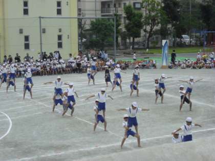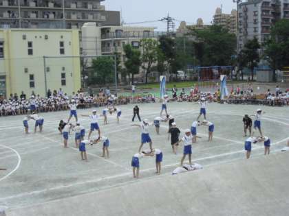 1曲目。一人技〜三人技です。ある意味、組体操の中で一人一人の成長が一番見られる場面でした!