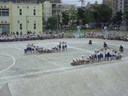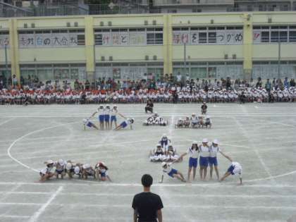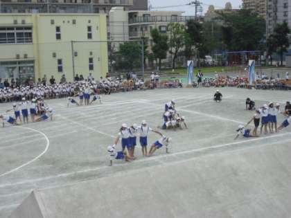 ウェーブから始まった2曲目。ピラミッドや扇の一気立ちを曲に合わせて作り、最後は全員でそろえてキメです!