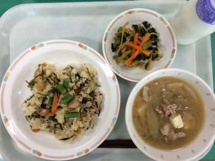 本校には、各クラスがランチルームで一週間給食を食べる行事があります。今週は6ー2。今日は特別ゲストとしていつも厨房で料理をしてくれているチーフが来てくれました。チーフは豚汁に使った「だし」の本物を子どもたちに紹介。初めて見る「だし」に子どもたちは興奮していました。「給食は生きた教材」とよく言われますが、「耳で聞く」だけでなく、「本物に触れる」ことで食とは何かということを伝えていきたいと思います。