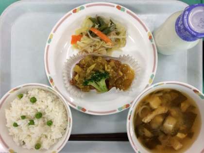 食育の日には何かをして子どもたちに喜んでもらいたいと思い1ヶ月以上前から考えていた献立、それが今日のから揚げです。子どもたちはサクサクしたものや、カレー味の物、揚げ物が好きな傾向があると感じています。それを踏まえた上で考えた献立がから揚げのカレーあんかけです。特にこだわったのは「あん」!!あんをたっぷりかけるとサクサク感がなくなってしまいます。そこで、あんの量を決めるために何度も試作を繰り返し、とろみ具合と量を調節。そして、ちょうど良い塩梅のあんを作りました。