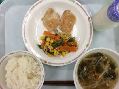 週の終り、「よし今日も行くぞ!!」と気合いを入れて厨房に入ってまず目に飛び込んできたもの、それは鶏肉でした。発注した鶏肉が想像していたものよりもだいぶ小さかったのです。これが給食で出てきたら子どもたちはどんな気持ちになるだろうか…がっかりする子どもの顔が浮かびます。これはやばい!!時間は9時30分。急遽鶏肉を追加で発注です。「鶏肉を切り身にするのに時間がかかるけれど、急いで持ってきますよ!」とお肉屋さん。「大丈夫ですよ。時間も間に合うように作ります!」と調理員さん。なんてみなさん心強いんだろう。。。地域(業者)の方の協力、そして調理員とのチームワークがあってこそ初めて給食はできるんだなと改めて感謝を覚える一日でした。子どもたちが「わーい鶏肉美味しそ〜!!」の声に今日は心から喜びと安心を覚えました。