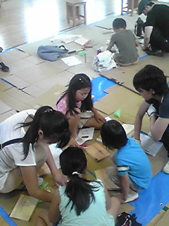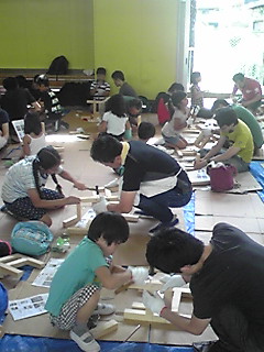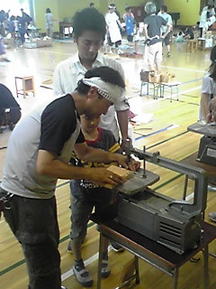 今日は遊び場開放委員会主催の『木工まつり』です。親子で仲良くトンカン♪トンカン♪体育館に金づちの音が響きます。中には一人で頑張ってる頼もしい子もいますよ♪