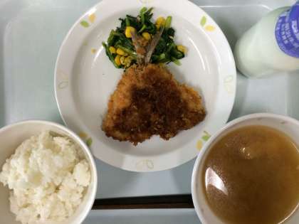 7月1日は海開きの日です。そこで、今日は海の食材を使った料理を考えました。まずはメインのおかずには鯵フライ!青魚の代表ともいえる海の魚です。そして、汁物は淡水から汽水(淡水と海水が混ざっている水)で生活するしじみの味噌汁にしました。フライはサクサク感が残るようカリッと油で揚げてもらい、味噌汁は美味しい出汁の味が出るようにしじみをいつもより多く入れました。どちらも子どもたちは慣れ親しんでいる味だったようで、「やった!鯵フライだ!!」と喜んで食べてくれました。ランチルームは今週から5−1です。ご飯粒も残さず綺麗に食べてくれました!
