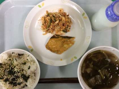 夏に美味しくなる野菜といえば、胡瓜、トマト、茄子などなど。しかし、苦いという理由から子どもたちの口に運ばれる機会が少ない野菜がいる。それはゴーヤです。ランチルームで話しているとどうやらゴーヤを食べたくないと口にする子どもが多いように感じたので、7月の献立に取り入れてみました。ただし、そのまま出しては芸がありません。美味しく食べてくれるために、塩で最初にもんだ後45分水でさらし、もう一度塩でもんでみました。そして、子どもが好きな調味料を考えて、ケチャップを選択。醤油と塩で味を調えてなるべくゴーヤが苦手な子どもも食べられるように工夫しました。ランチルームでは「ゴーヤ苦手だけど、このゴーヤは食べられた!」と嬉しい反応をしてくれるお友だちもいて、チャレンジした甲斐があったなと心の中で万歳!残り給食もわずかですが、力を緩めることなく取り組んで行きたいと思います!