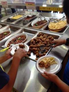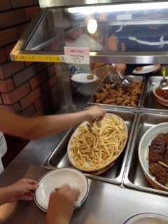 バイキングでの子供の姿。メニューはいろいろあるのですが、人気はフライドポテトと唐揚げです。これは毎年どこの学校でもだいたい同じ傾向です。社会全体の食生活のことを考えさせられます‥‥。